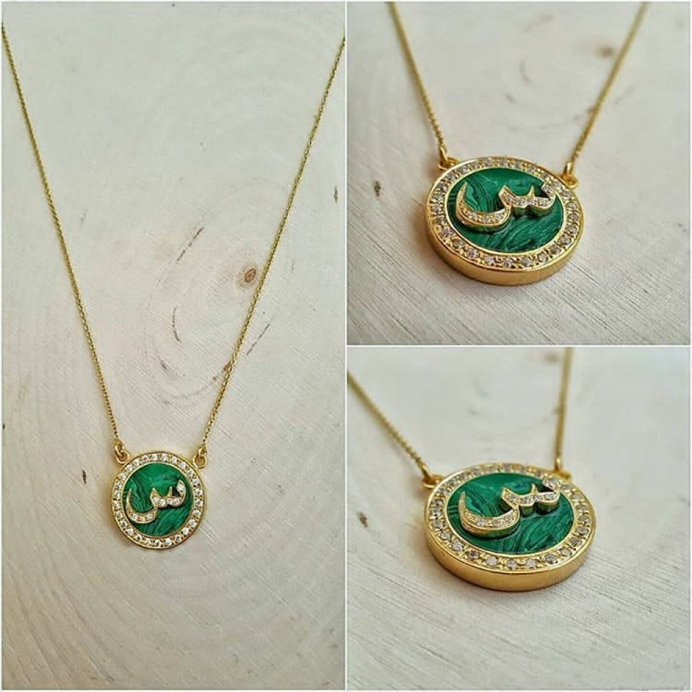 سلسال فضة إيطالي خالص عيار 925 مع حجر الملاكايت الروسي الاخضر