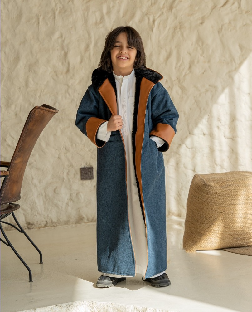 فرو شتوي ولادي بأطراف جلد طبيعي بالاسم تفصيل وتطريز حسب الطلب