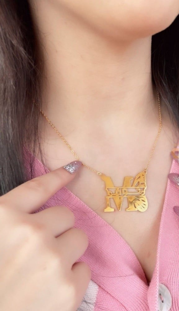 سلسال حرف مع قلب مع الاسم حسب الطلب.يمكنك كتابة الأحرف عربي او انجليزي.يتوفر اللونين:الذهبي.الفضي.ضمان سنتين على اللون.نصنعه باحتراف يدوياً وبشكل خاص لكل عميل.