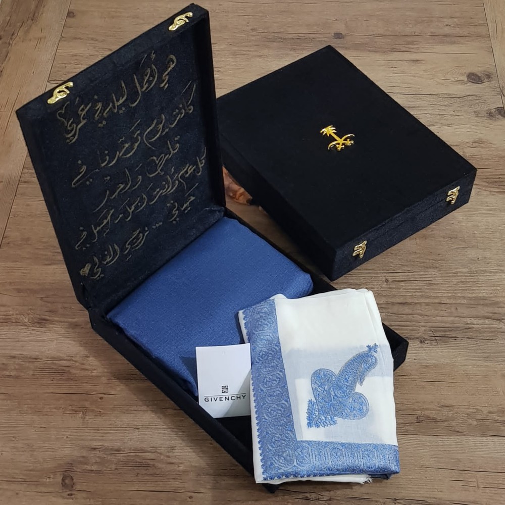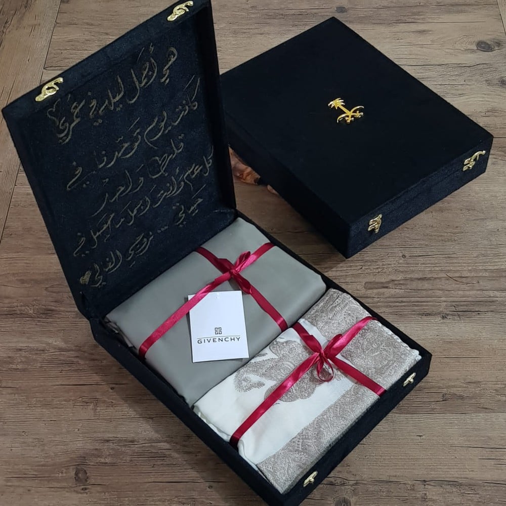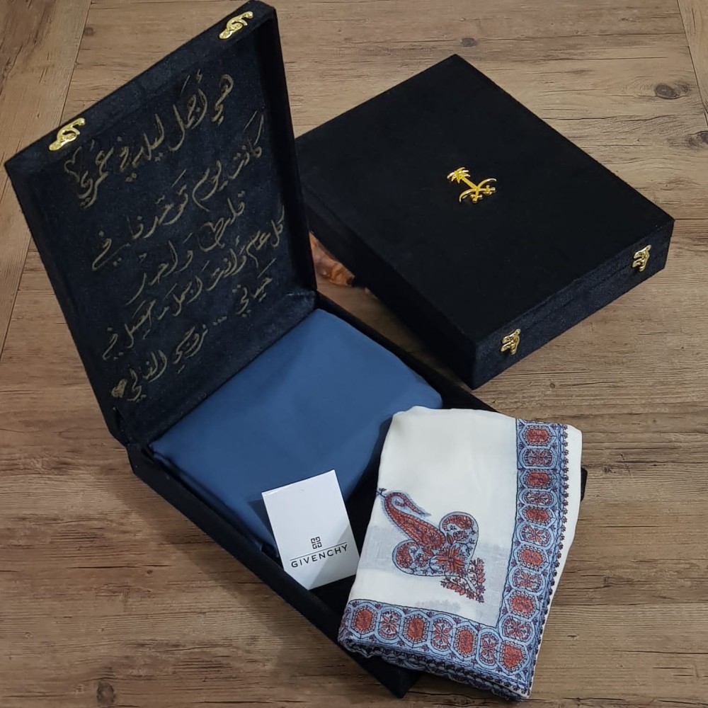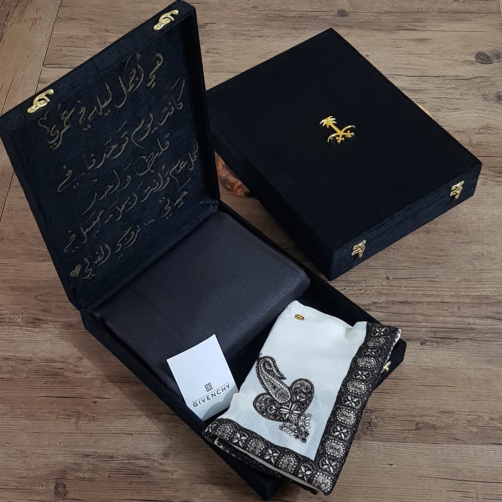 بالاضافه الى علبه اسود ملكي مع الكتابه يدوي خطاط