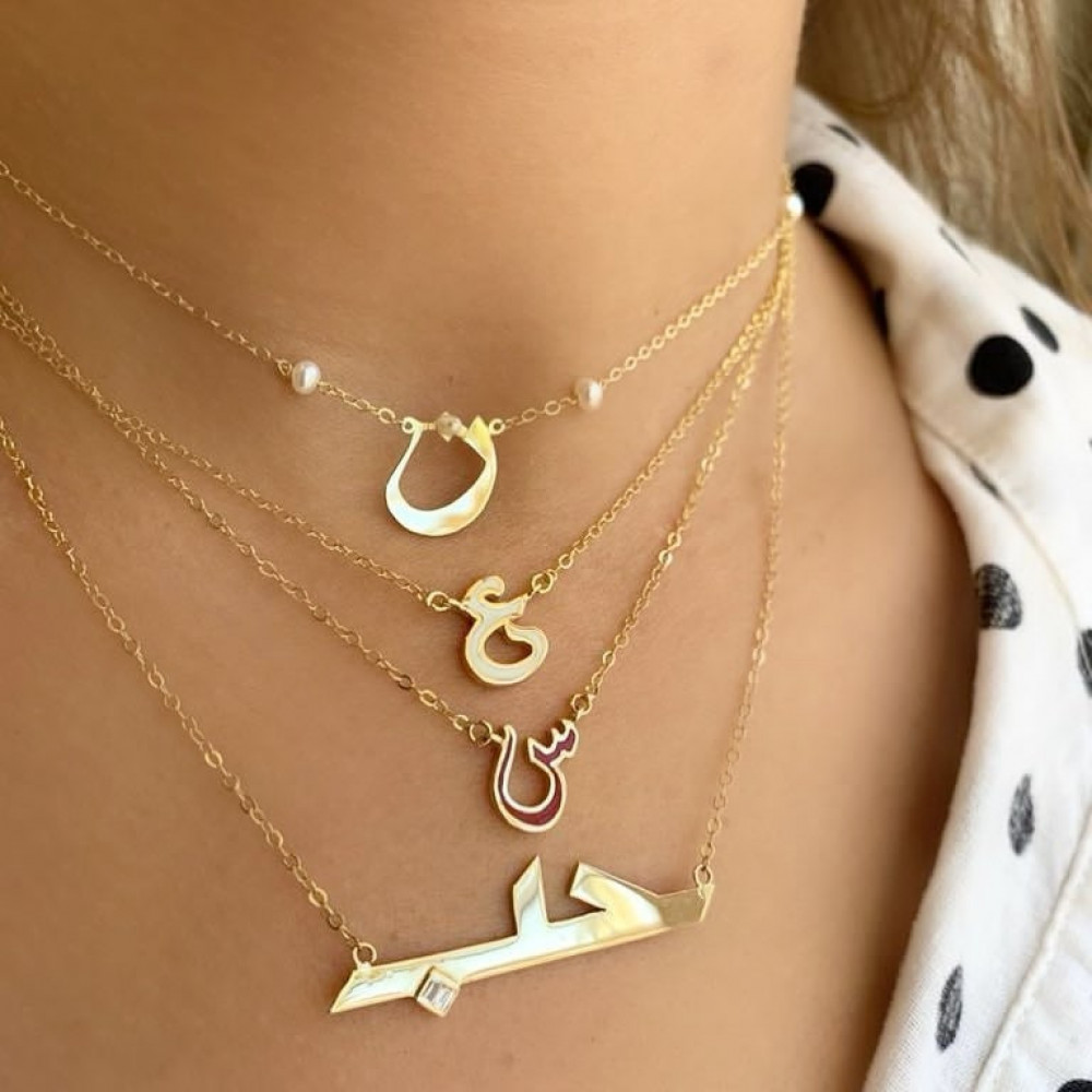 سلسال بتصميم الاسم مع شوكر الؤلؤ و الزركون حسب الطلب