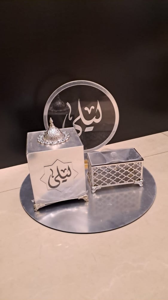 مبخرة وصينية واستاند وحامل مبخرة اكريلك بالاسم حسب الطلب