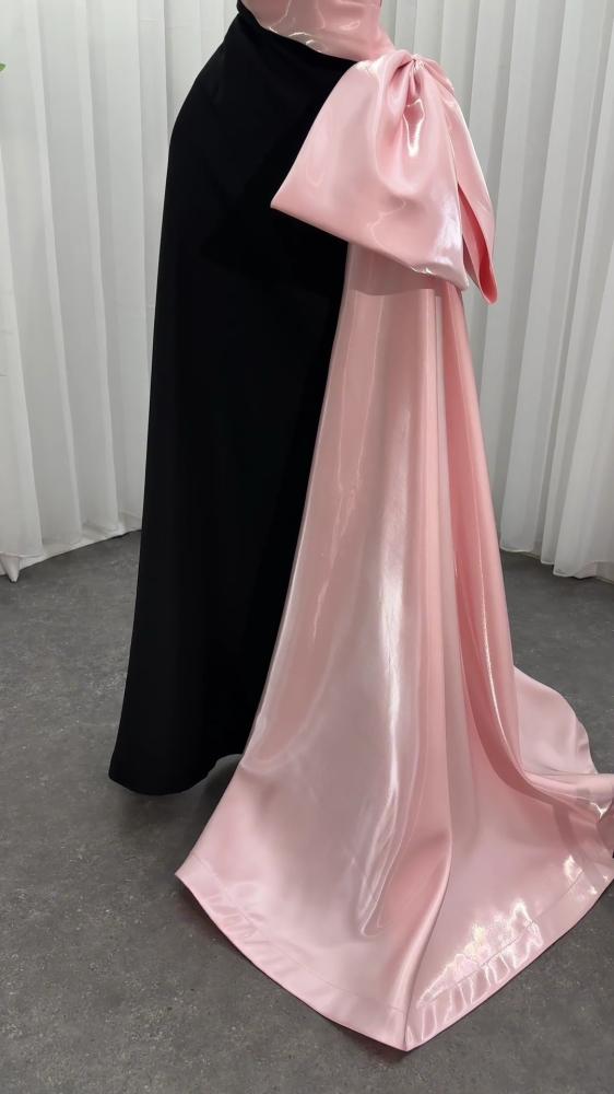 فستان مناسبة قماش ميكادو لماع مع باربي