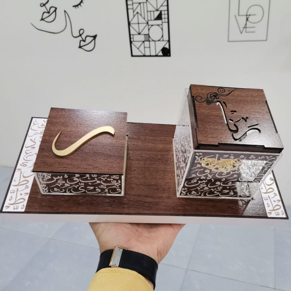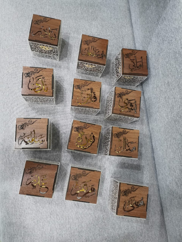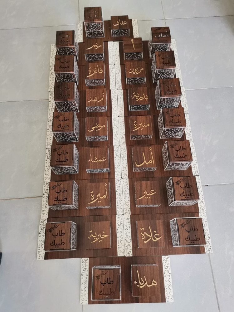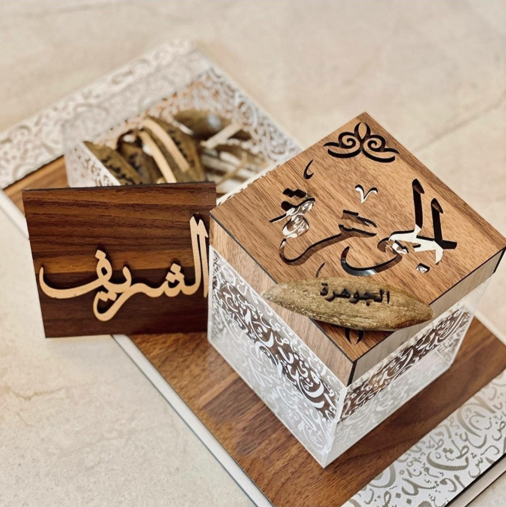 مباخر خشبية مضغوطة باكريلك مع نحت العبارة والاسم