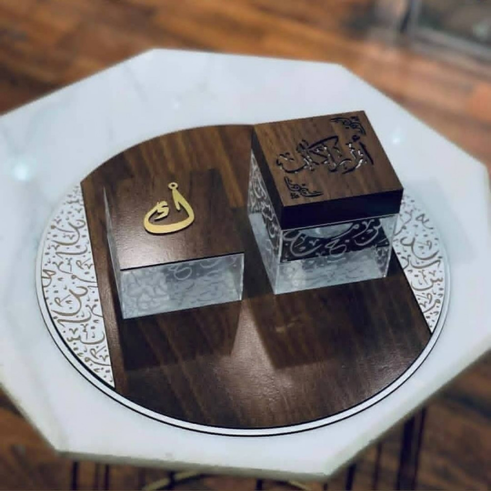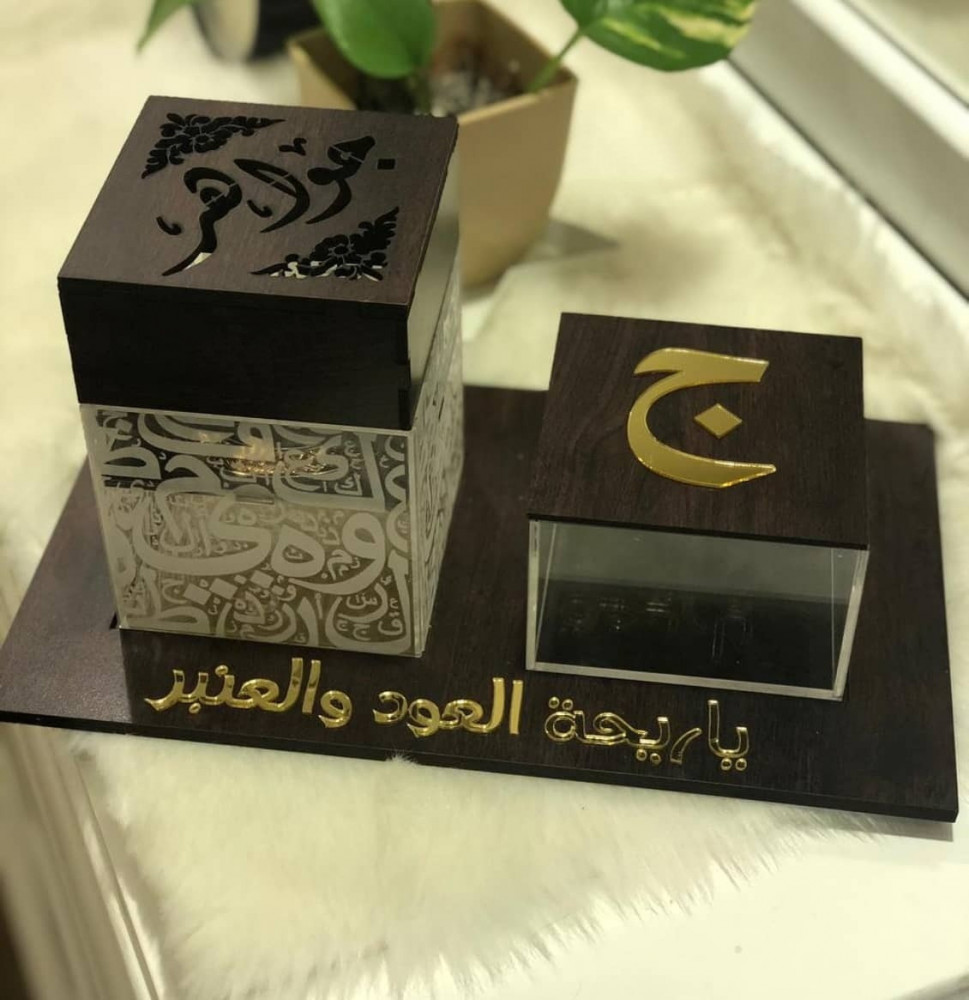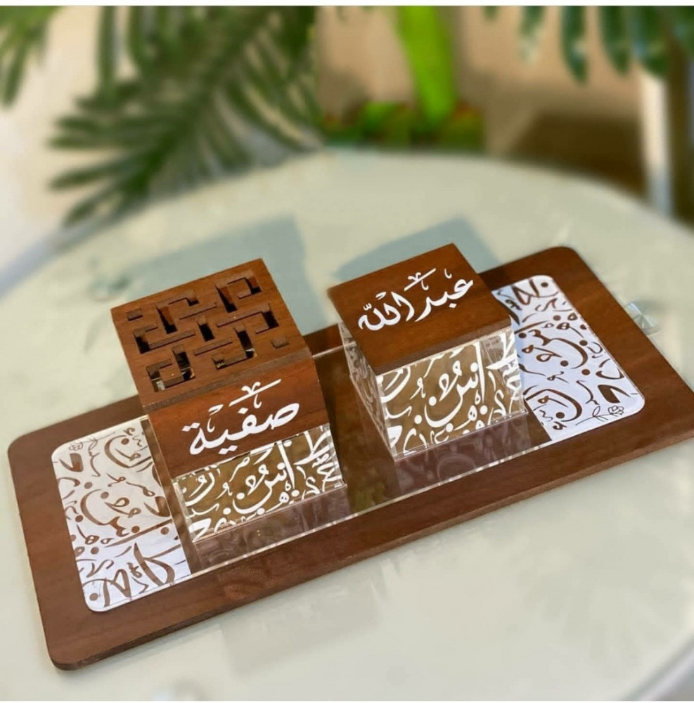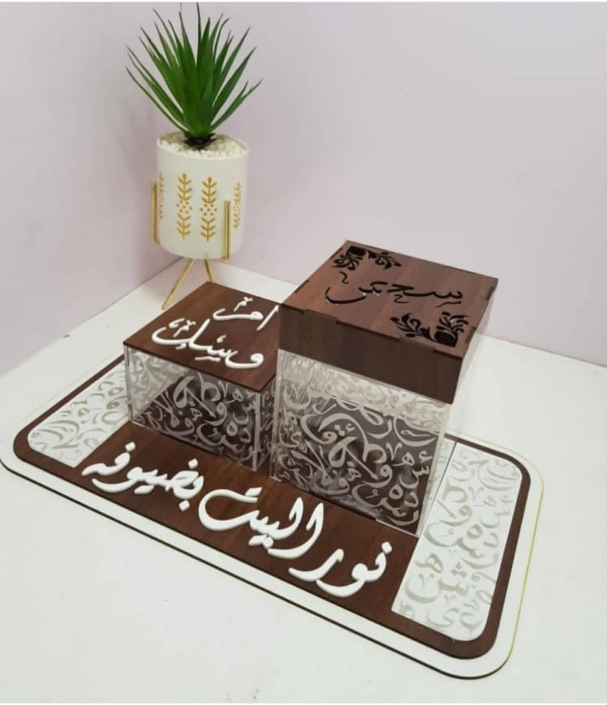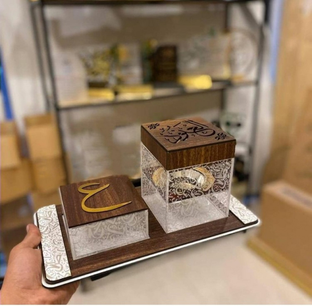 مبخرة وصينية واستاند وحامل مبخرة اكريلك بالاسم حسب الطلب