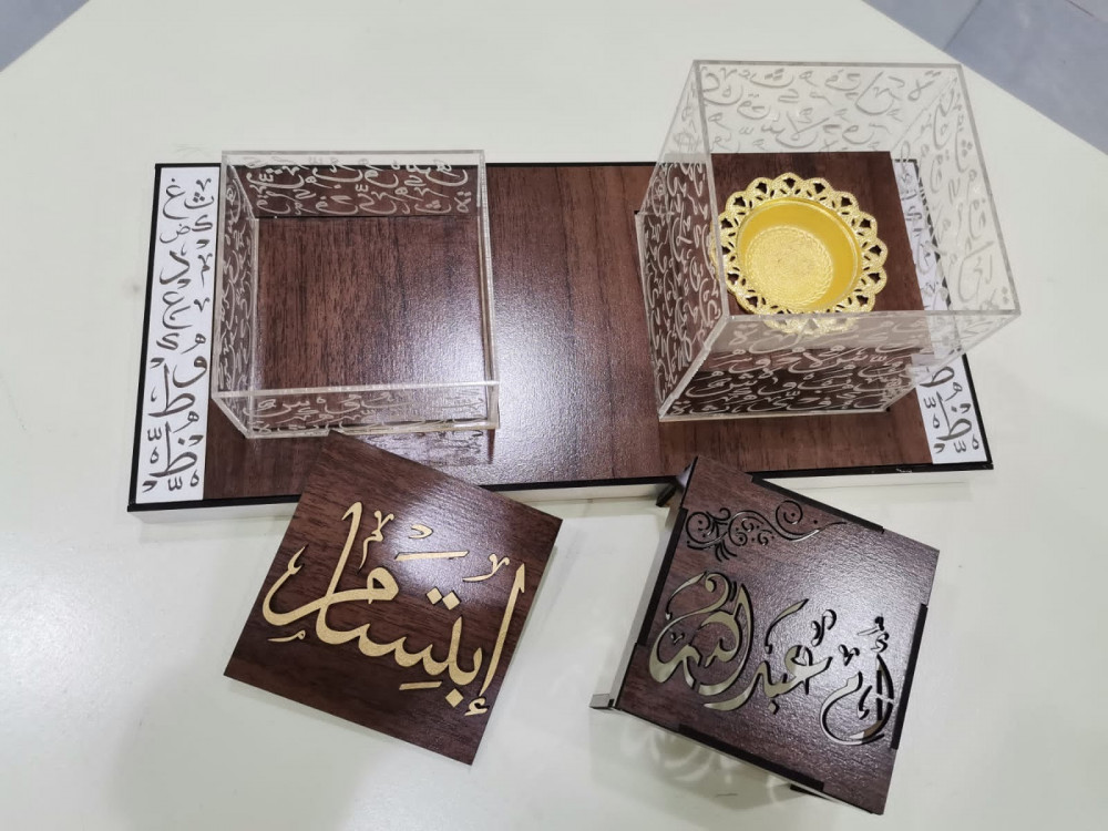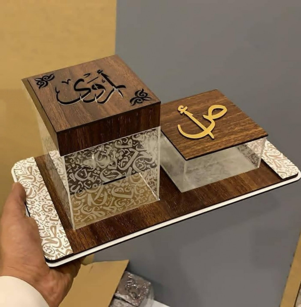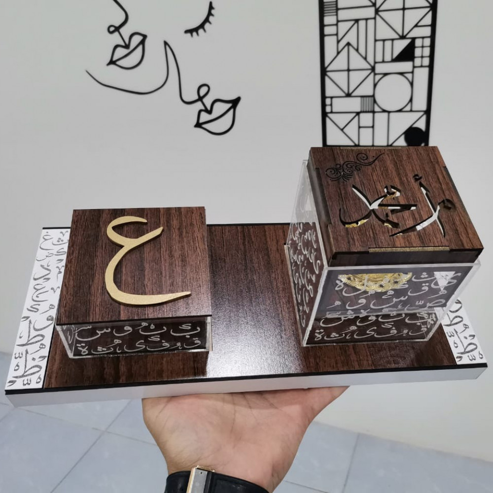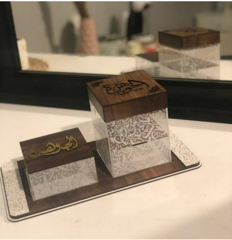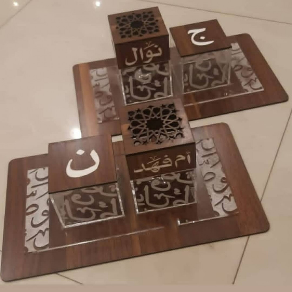 مبخرة وصينية واستاند وحامل مبخرة اكريلك بالاسم حسب الطلب