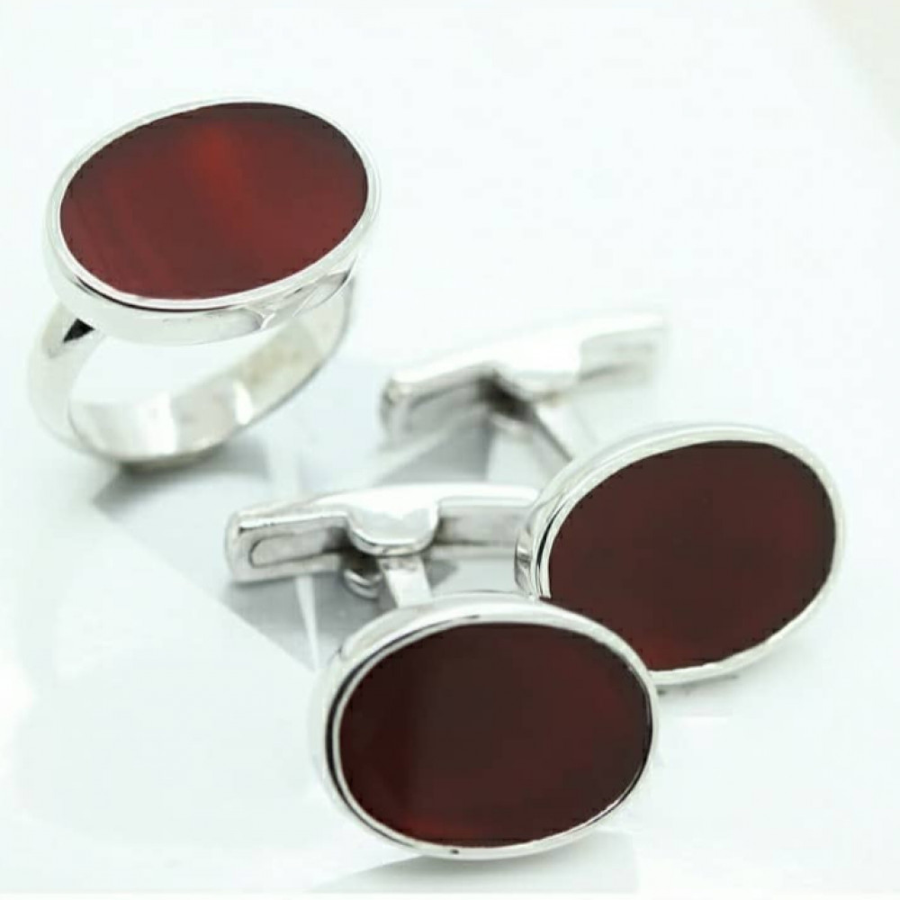 كبك فضة إيطالي خالص مع حجر عقيق اخضر
