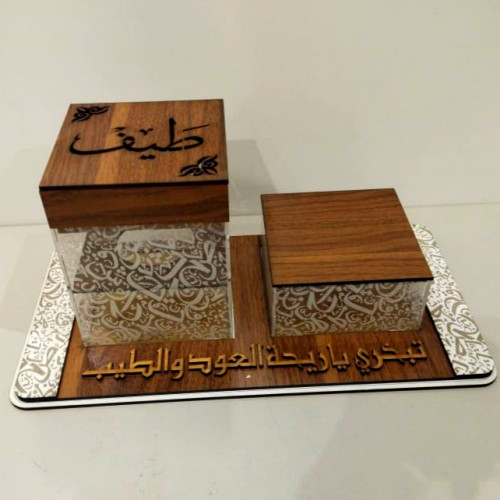 مصنوعة من الخشب والجلد اللامع مع عبارة من الاكريليك اللامع