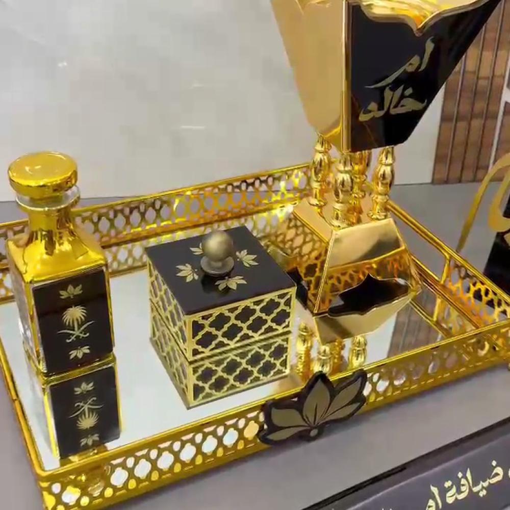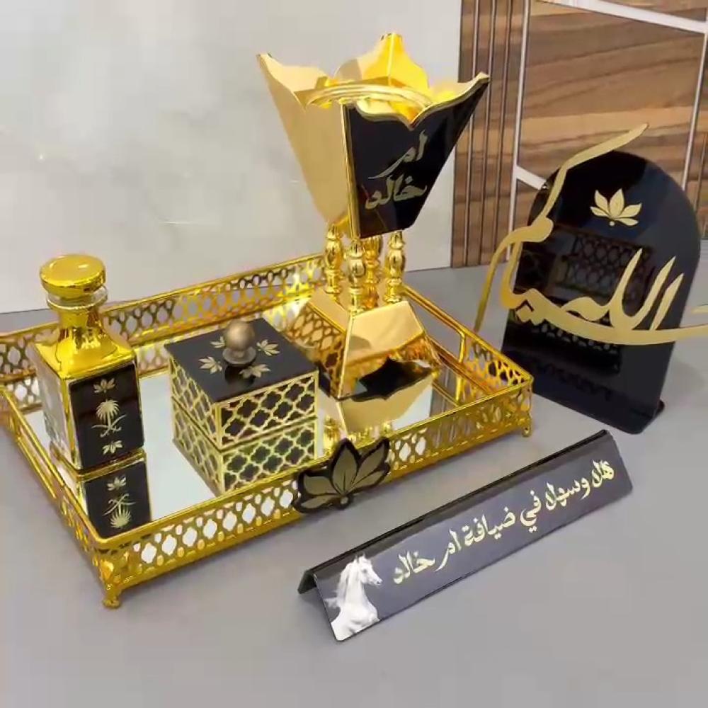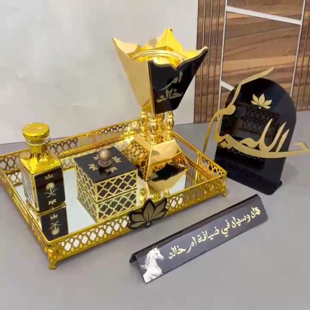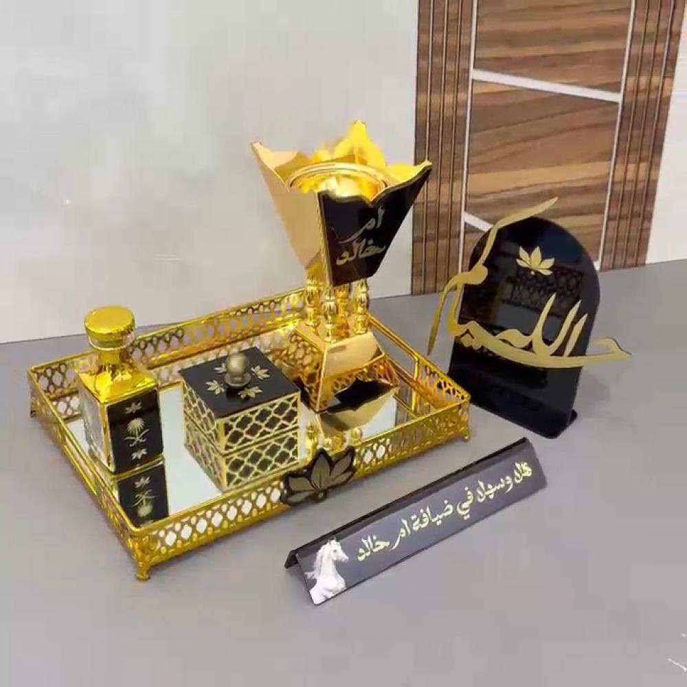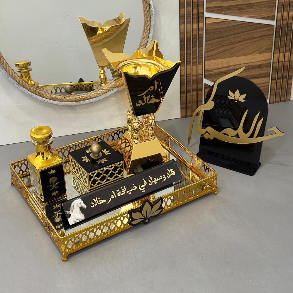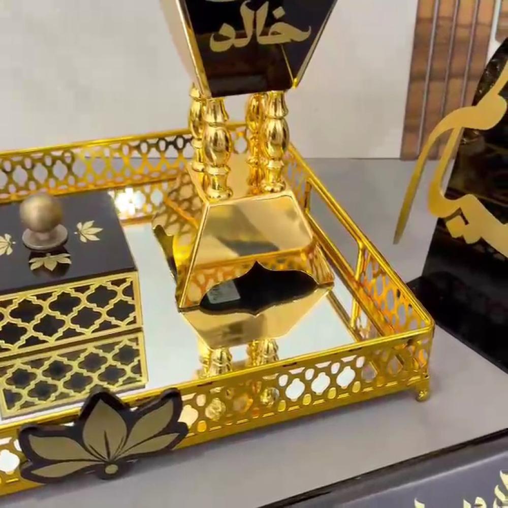 ١- مبخرة ذهبية بالكامل يتوسطها اكريلك اسود بالاسم حسب الطلب