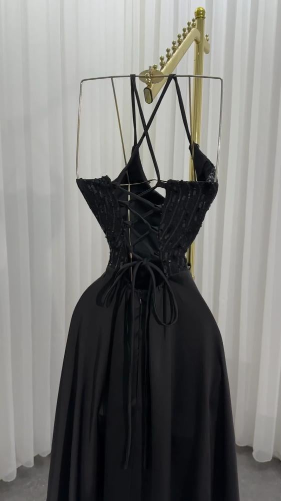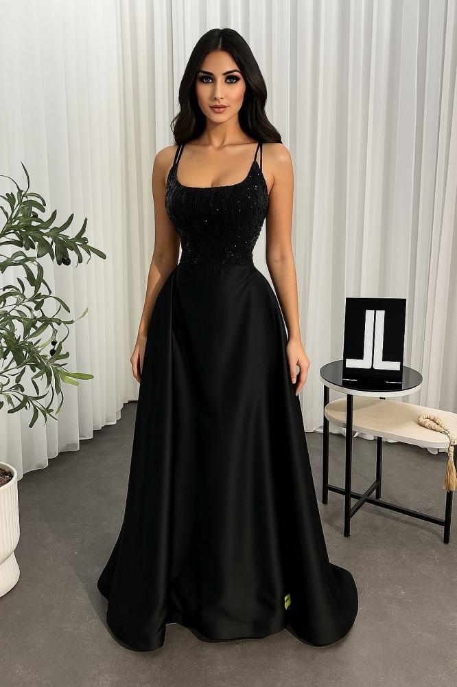 فستان مناسبات قماش تفته حرير مع ترتر استريتش