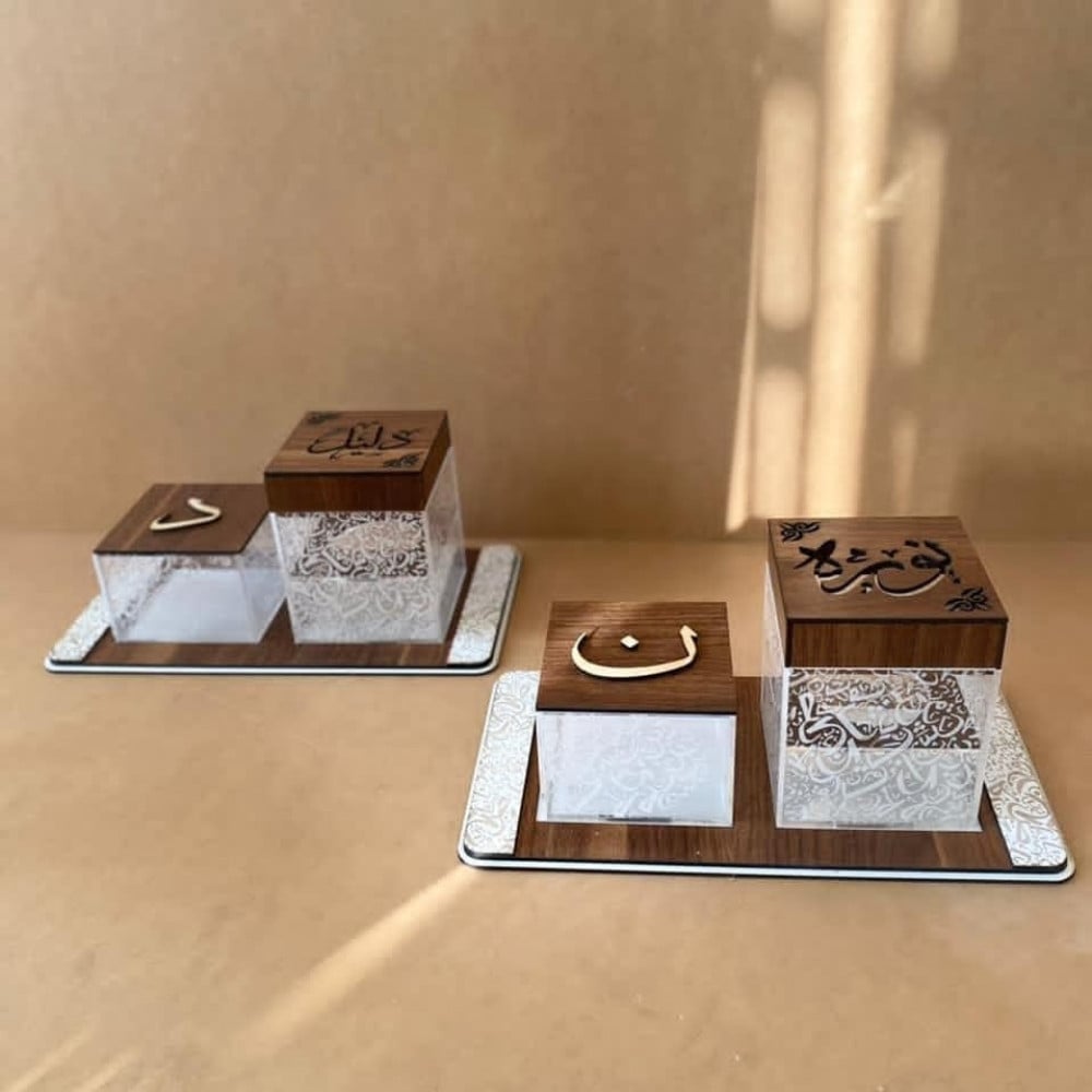 طقم مباخر خشبيه اكريلك بااسم من لافيولا