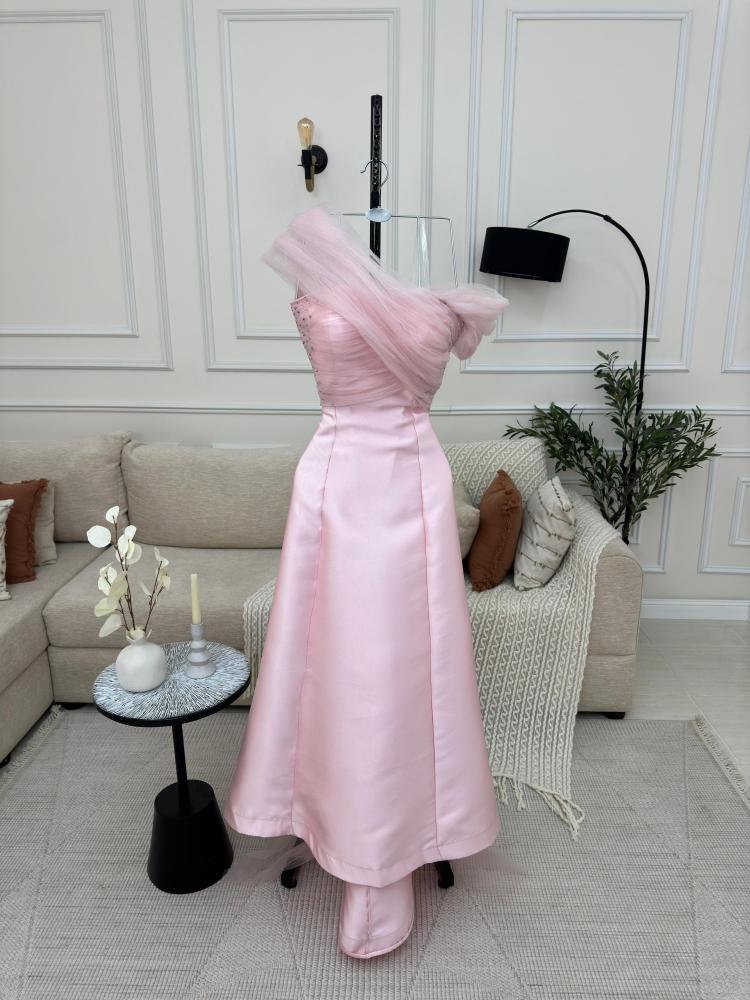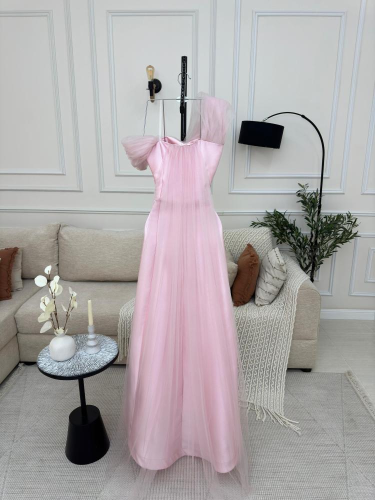 فستان نسائي سهره قماش ميكادو مع تل ناعم
