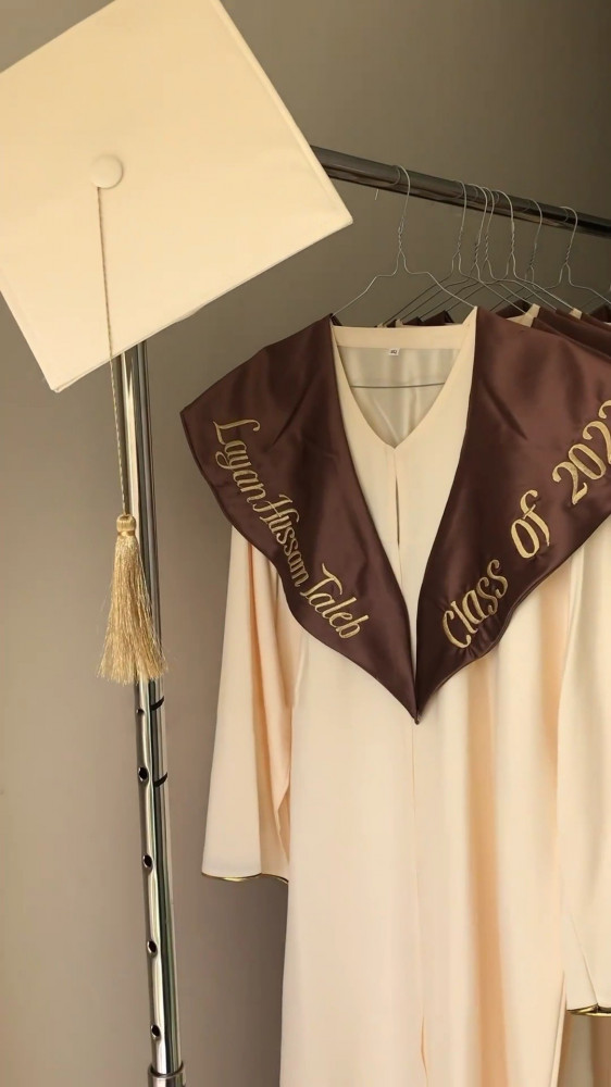 عباية تخرج قماش كريب لون اوف وايت بالاسم والعبارة وسنة التخرج وشعار الدفعة تفصيل وتطريز حسب الطلب عبايات تخرج 2023 جملة وقطاعي جامعة ومدارس 2023