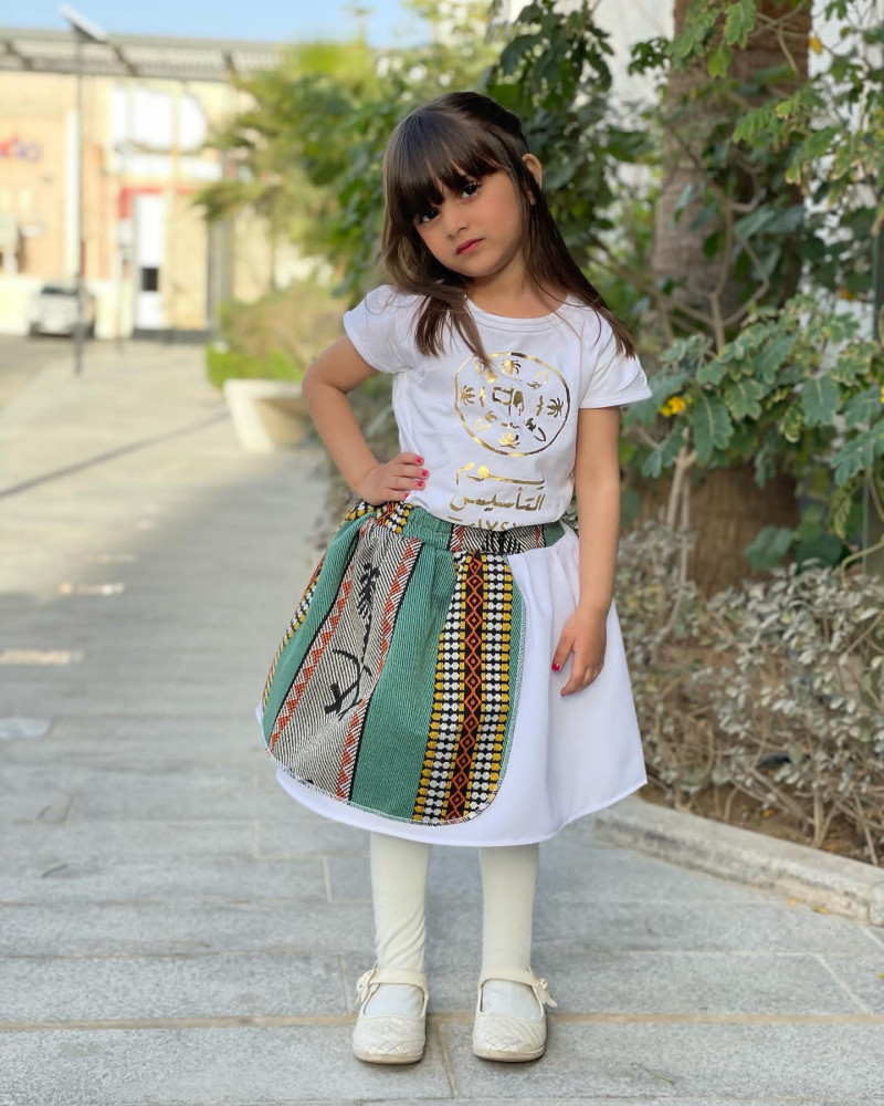 تنورة مع تيشيرت بناتي ليوم التاسيس الوطني قماش كريب مع سدو