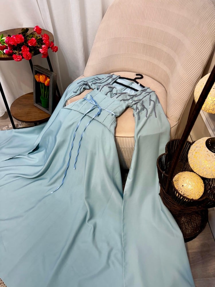 الخامه /باربي + تطريز يدوي + حزام ربط