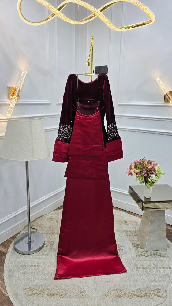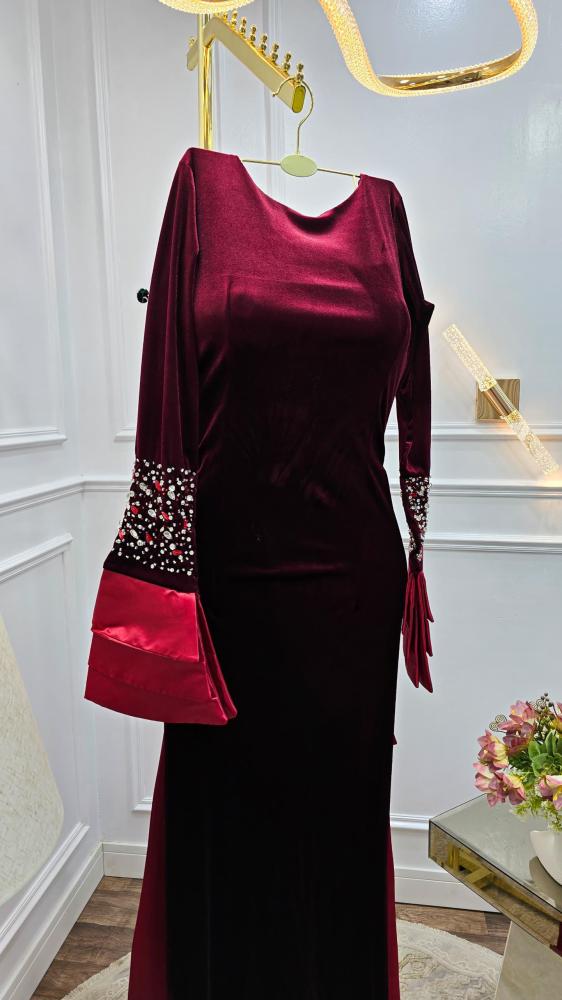 فستان نسائي سهره قماش مخمل مع تفتة ستريتش