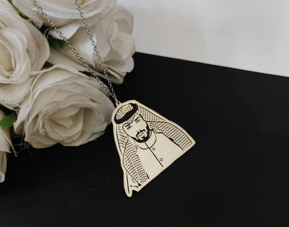 تعليقة كسرة العود شكل خريطة المملكة مع سيفين ونخله