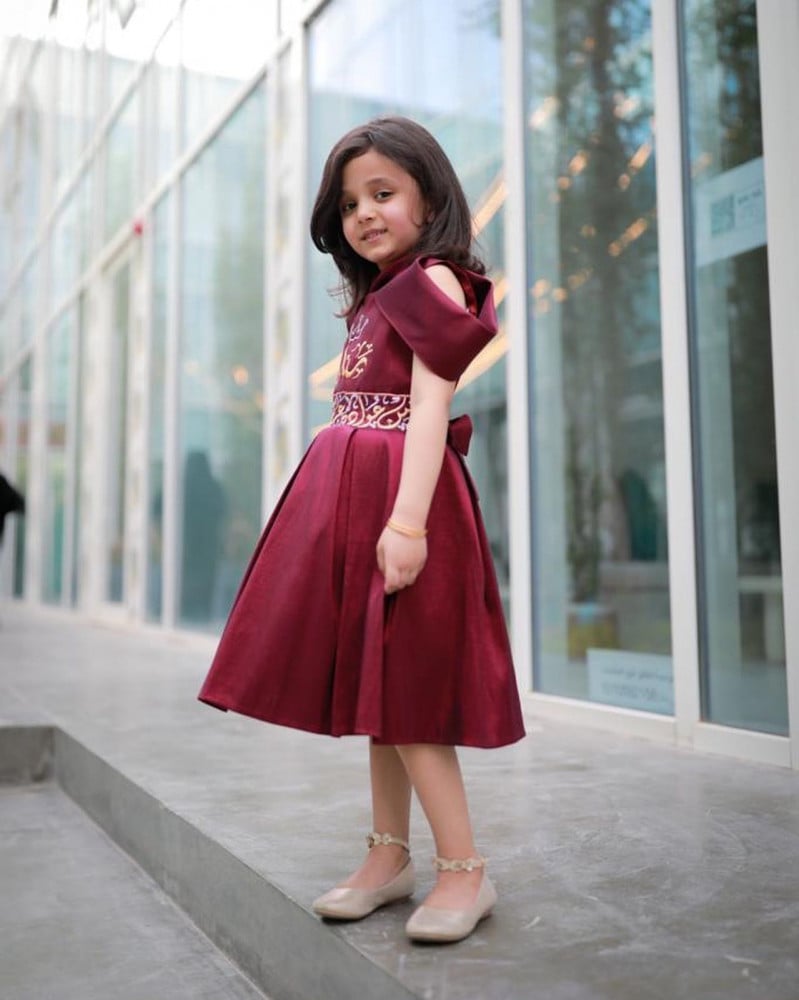 فستان شالكي بناتي بالاسم مع ربطة فساتين وازياء رمضان