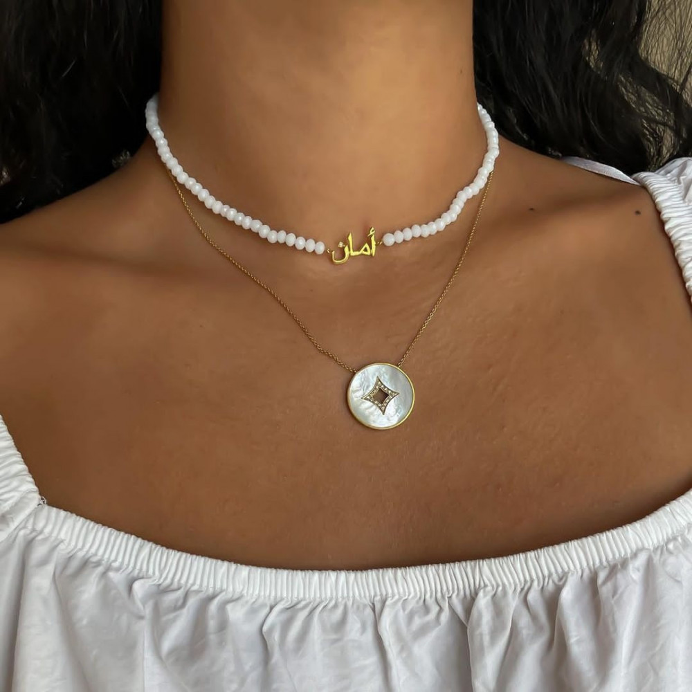 سلسال بالاسم مع شوكر الؤلؤ بتصميم حسب الطلب