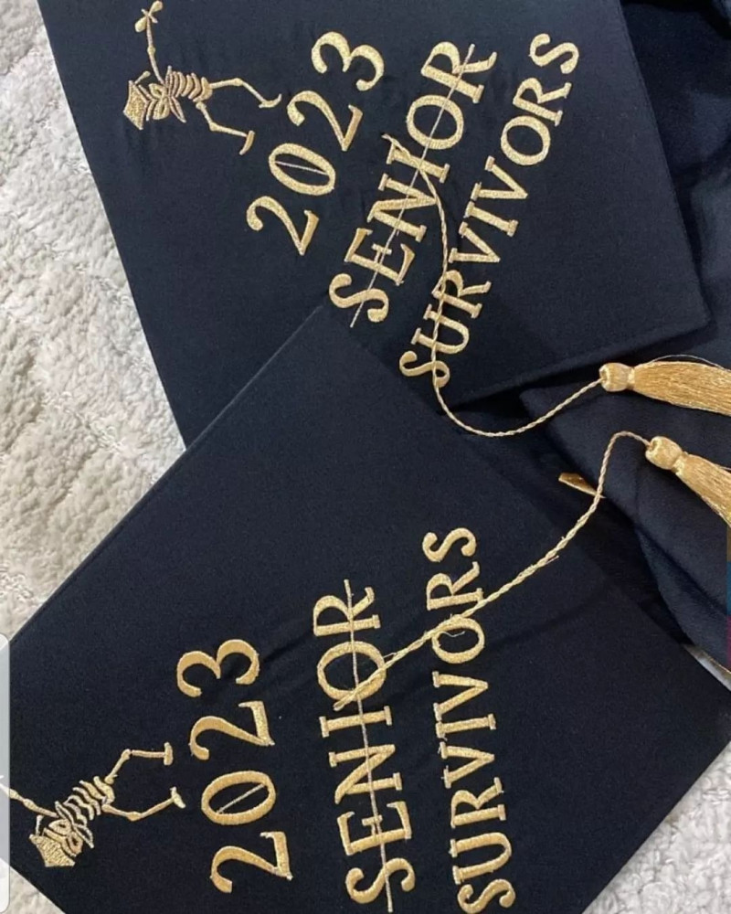 قبعه تخرج تطريز بالاسم والعبارة وسنة التخرج وشعار الدفعة