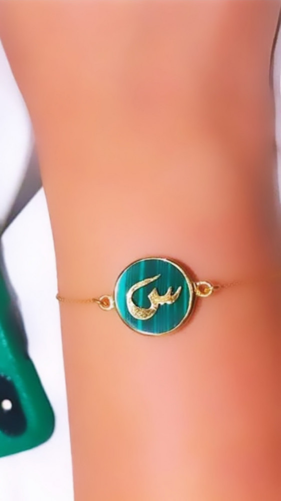 اسوارة فضة خالص بتصميم حسب الطلب مع حجر صدفي اختاري حرف برج اسم
