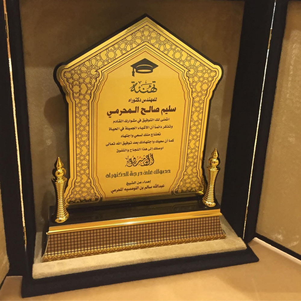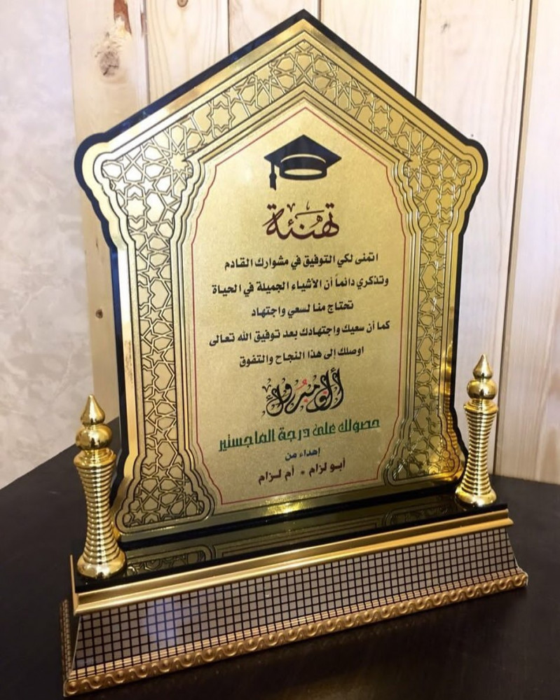 دروع تخرج وشكر وتقدير ودروع تهنئة بتصميم حسب الطلب