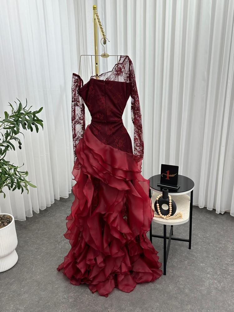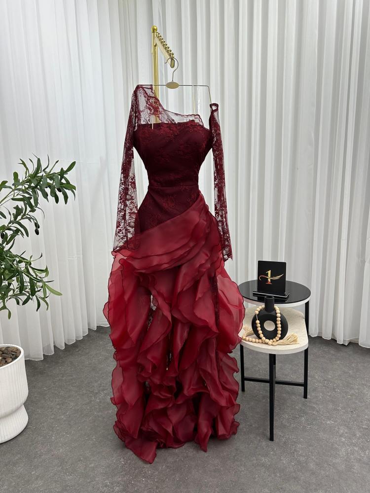 فستان سهرة خامة دانتيل كوري مع اورجنزا