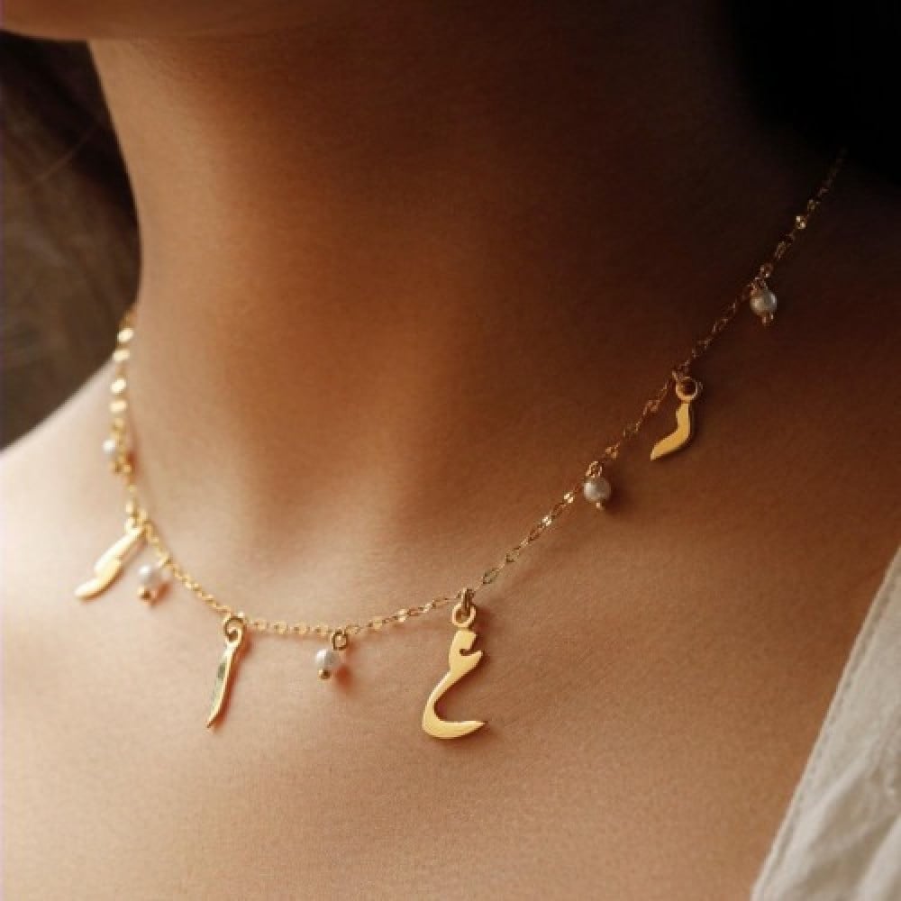 سلسلة بتصميم الاسم مع صدف افريقي ومع حجر كريم حسب الطلب اسم وبرج او حرف وبرج