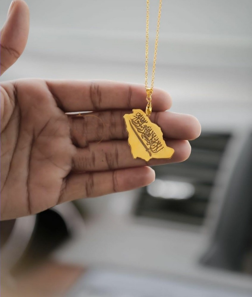 تعليقة كسرة العود شكل خريطة المملكة مع سيفين ونخله