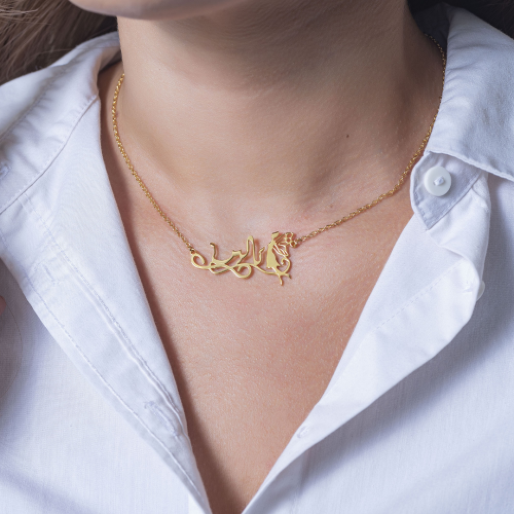 سلسال اسمين مع حجر اخضر بتصميم حسب الطلب