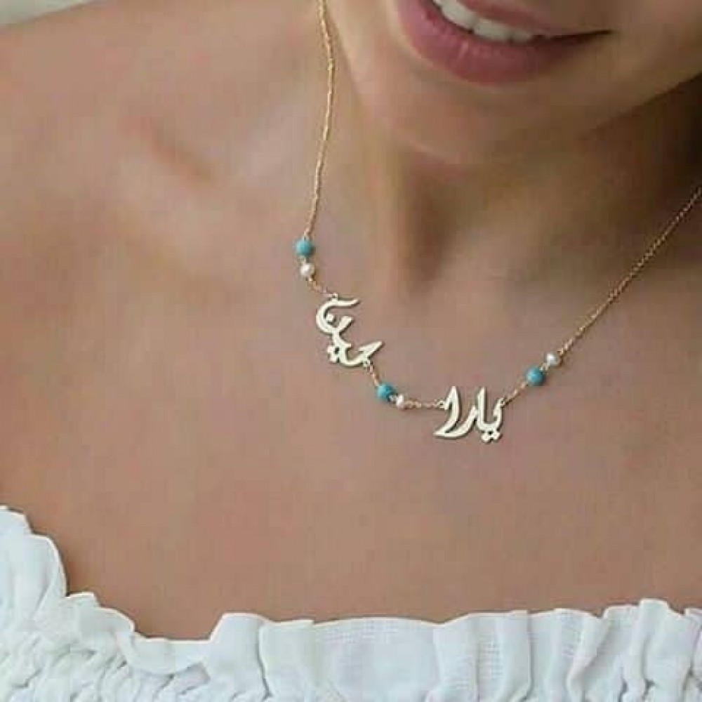 سلسال الاسم الؤلؤي مع لؤلؤ طبيعي ناصع شوكر لؤلؤ مع اسم واسم مع ولؤلؤ