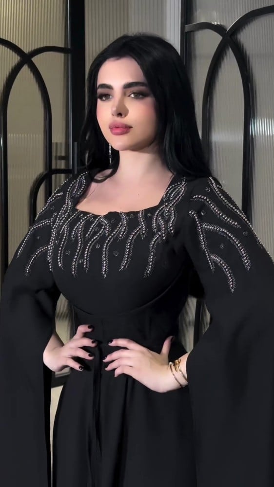 الخامه /باربي + تطريز يدوي + حزام ربط