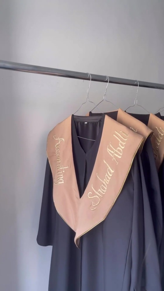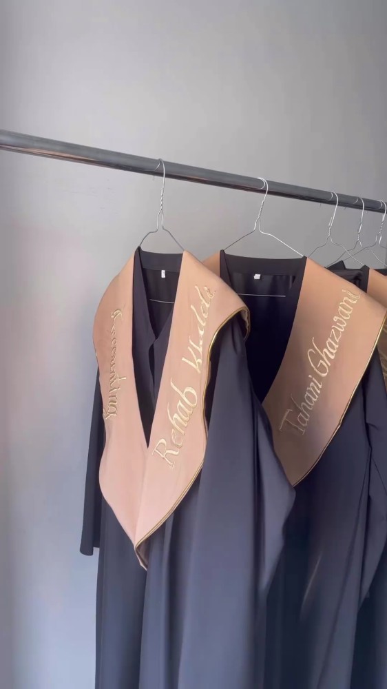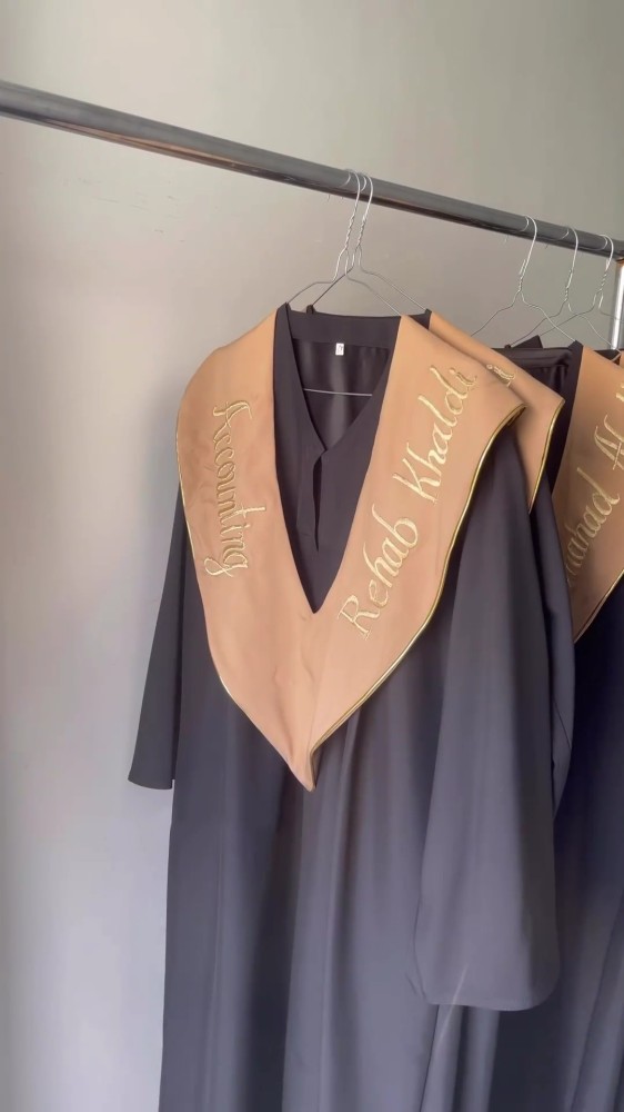 عبايات تخرج 2024 تفصيل العباية و تطريز الوشاح والقبعة حسب الطلب