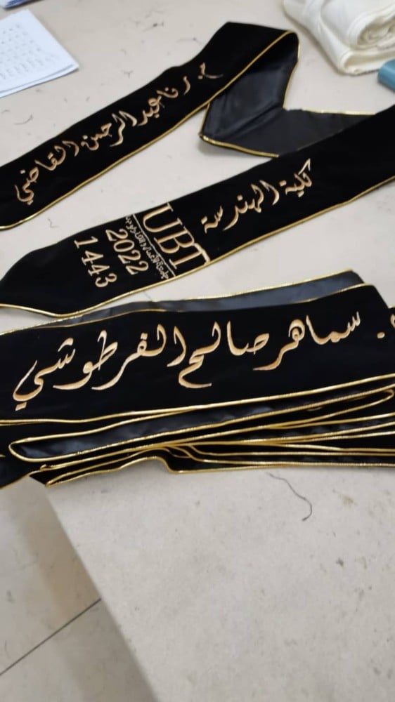 وشاحات تخرج تفصيل وتطريز حسب الطلب قماش ياباني