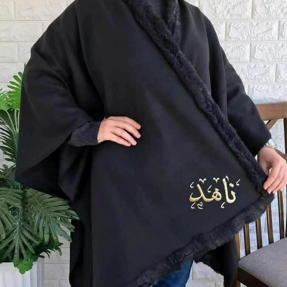 شال نسائي شتوي بالاسم مع طاقية مع فرو