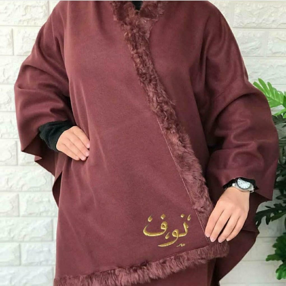 شال شتوي نسائي جوخ مع فرو بالاسم طويل للركبة