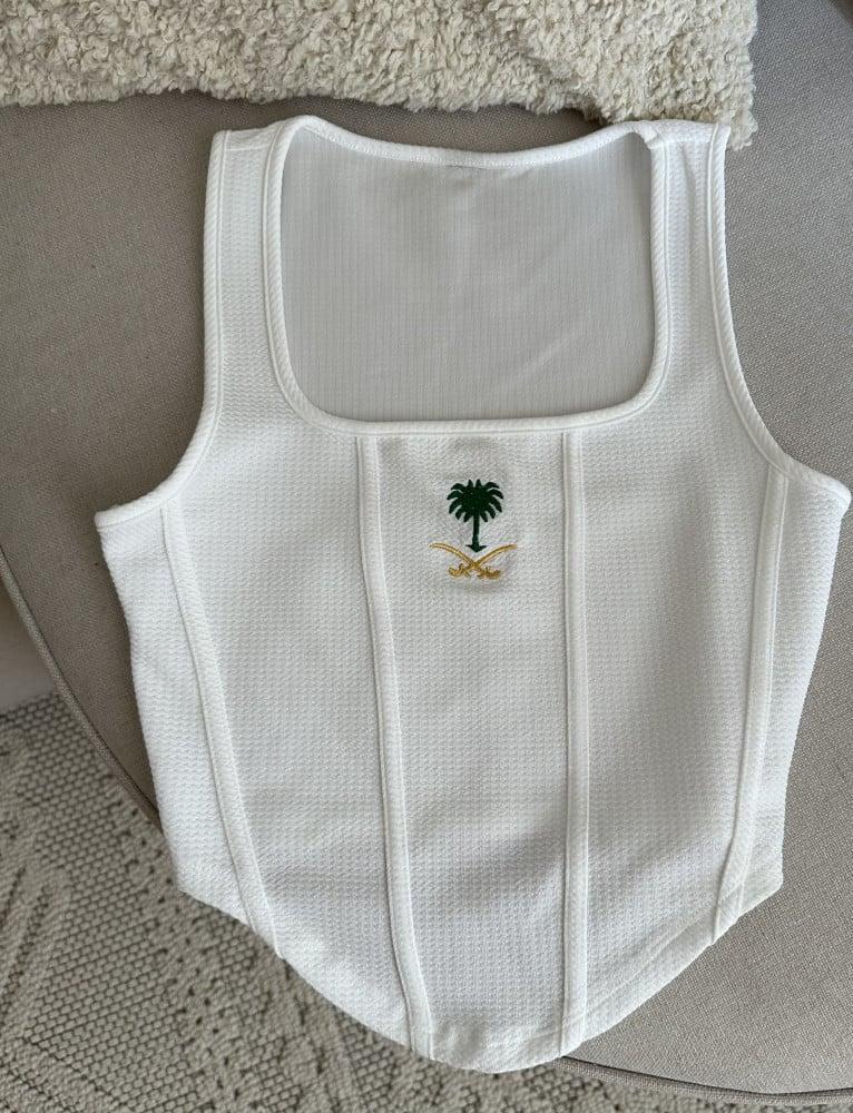 بلوزة اليوم الوطني بتصميم هوية اليوم الوطني والاسم حسب الطلب نسائي