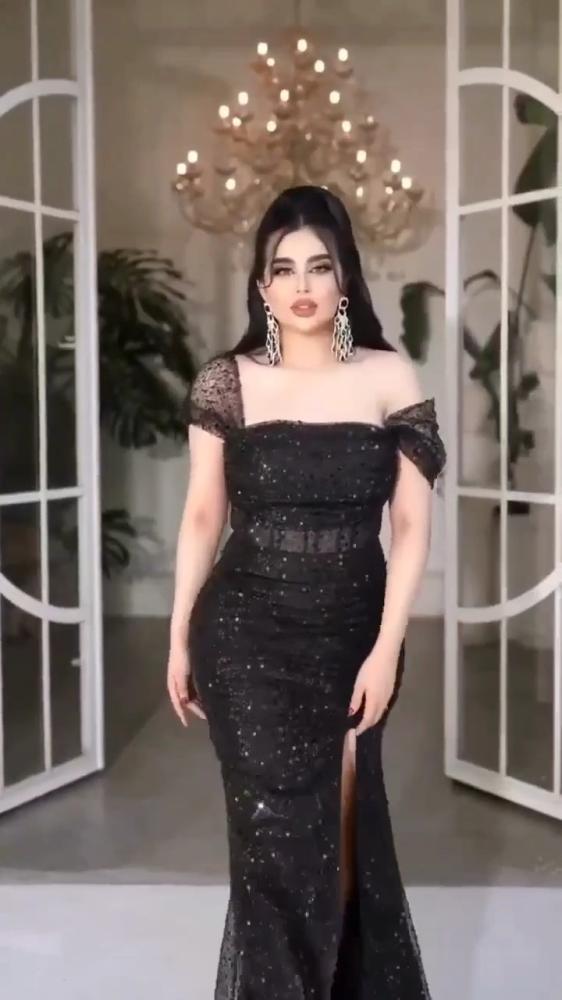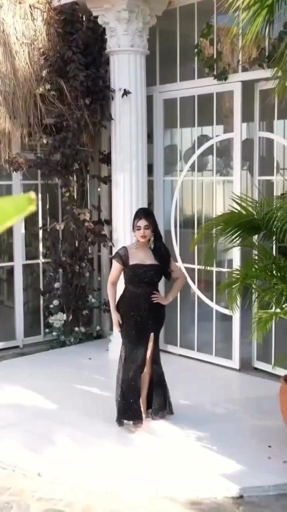 فستان سهرة قماش كردانة مبطن تفته ستريتش