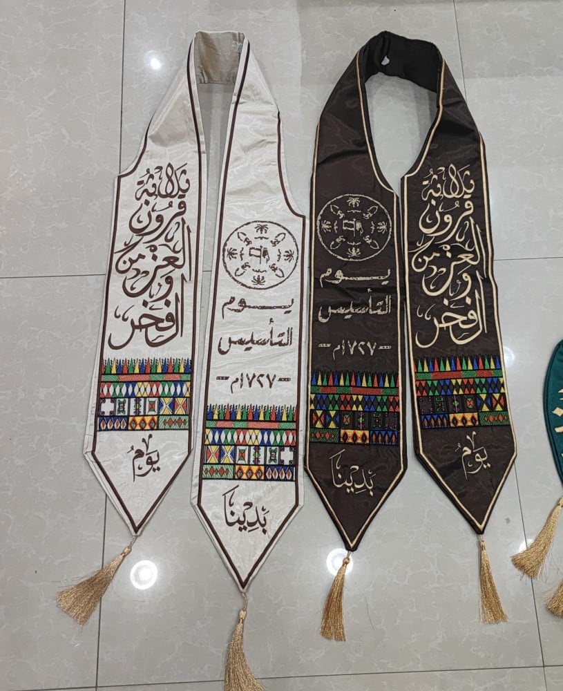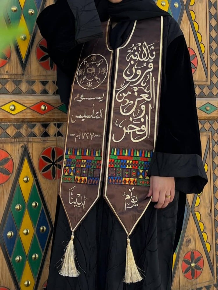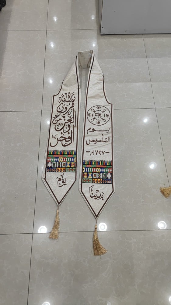 الوشاح جاهز للتسليم الفوري ويتوقر إضافة تطريز وتفصيل حسب طلبك