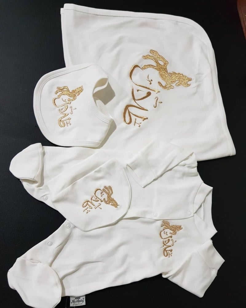 طقم مواليد بالاسم تفصيل وتطريز حسب الطلب